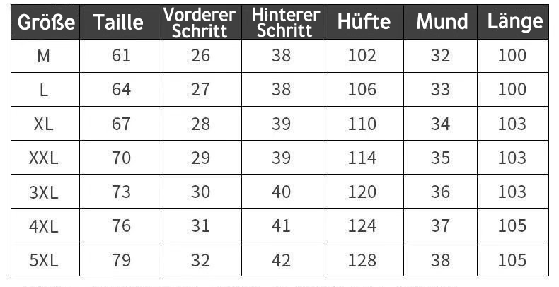 Größentabelle: